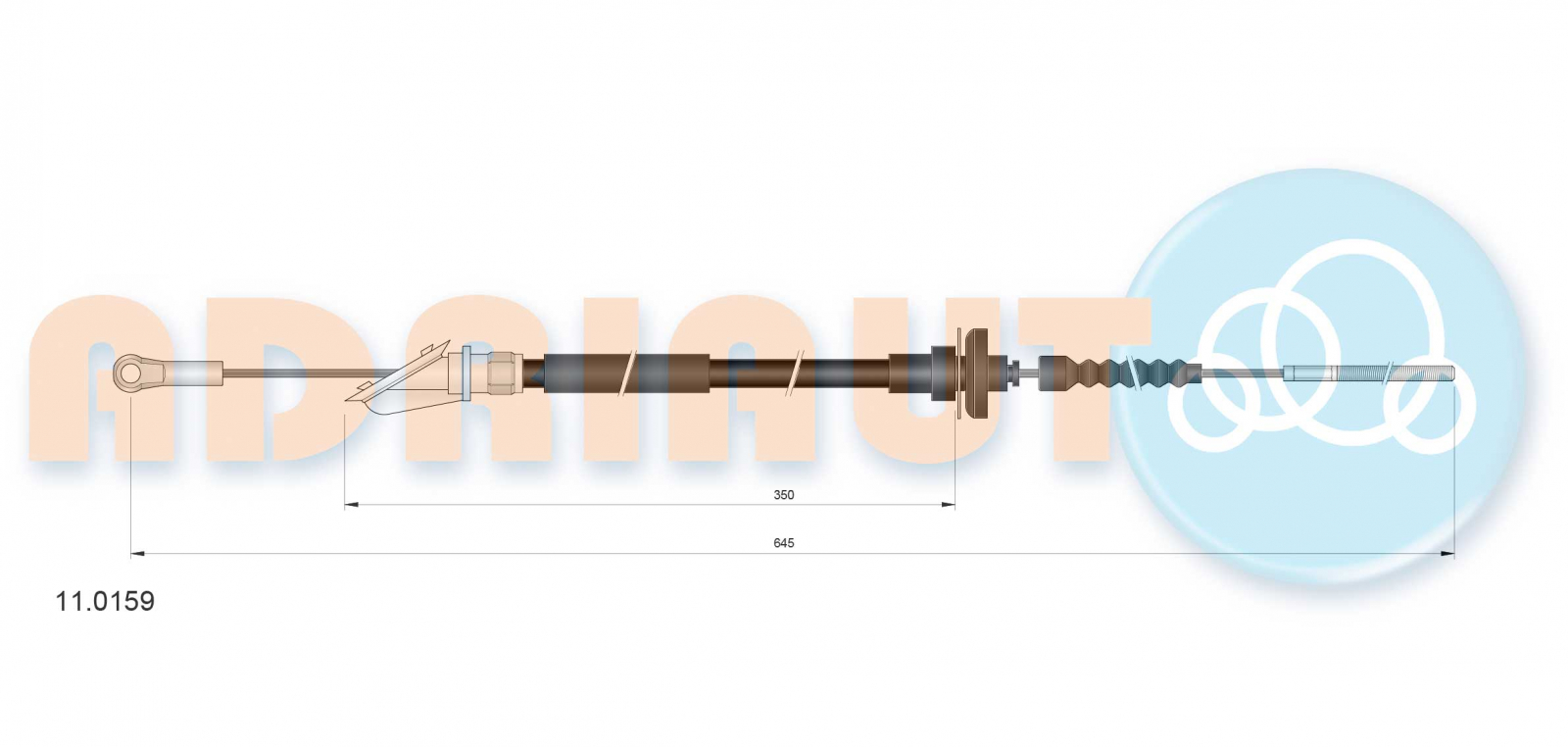 ADRIAUTO Cablu ambreiaj (645mm/350mm) potrivit FIAT DUNA, FIORINO, FIORINO/MINIVAN, PENNY/KOMBI, UNO 0.9-1.7D 01.83-05.00